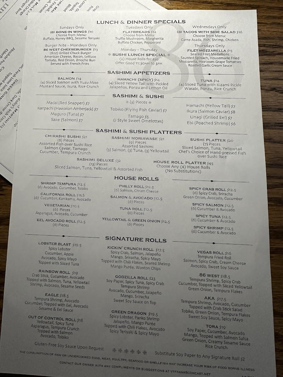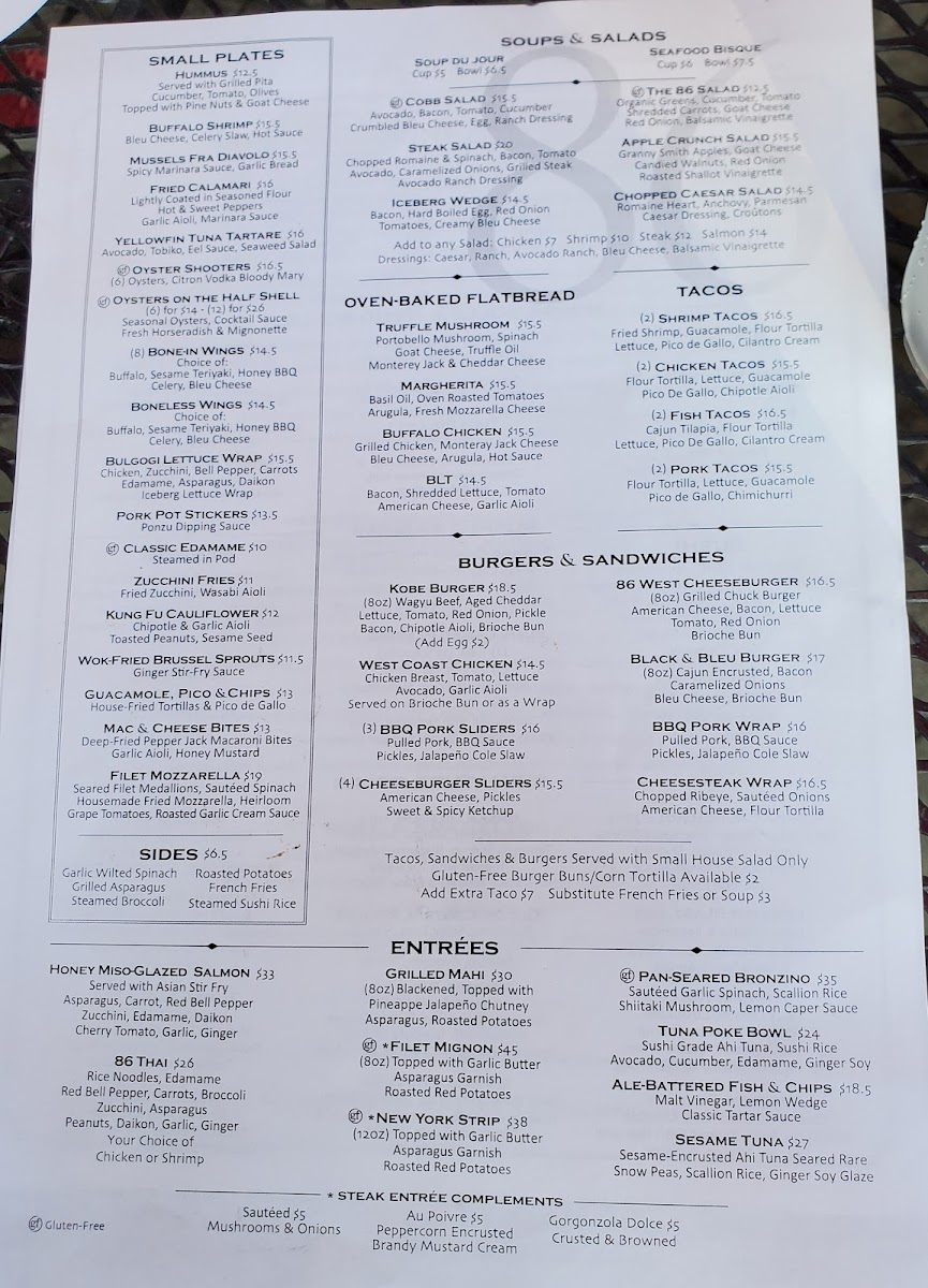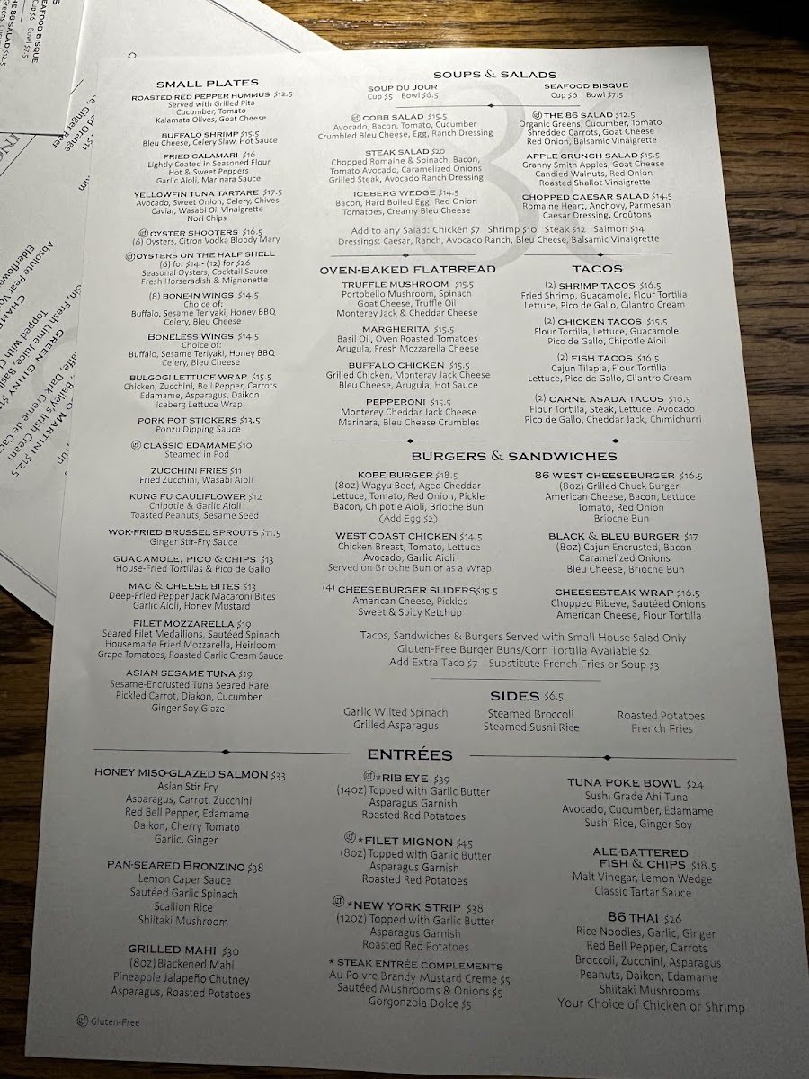 86 West Menu (2025 Update)